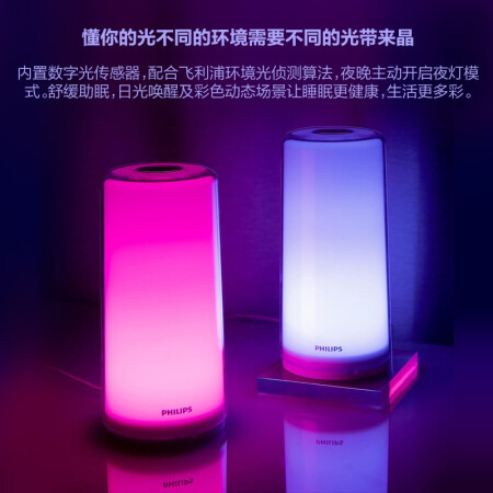 飞利浦小米智能声控床头灯彩色氛围情调灯卧室小夜灯台灯喂奶灯大学宿舍助敏唤醒米家APP自营【智睿床头灯】