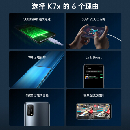 OPPO K7x 6+128GB 云之彼端 4800万四摄 5000mAh长续航 90Hz电竞屏 30W闪充 游戏智能 5G手机