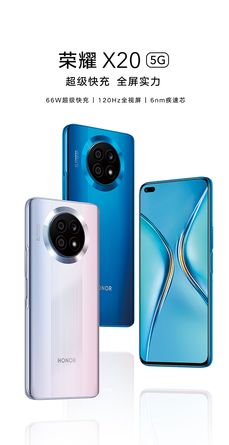 荣耀X20 66W超级快充 120Hz高刷屏 6400万超清影像 4300mAh 6GB+128GB 幻夜黑