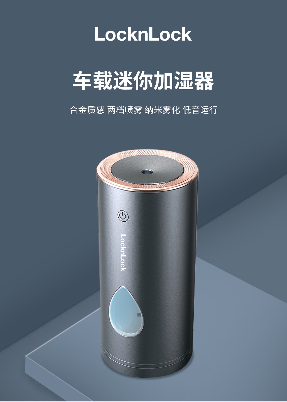 乐扣乐扣(LOCK&LOCK)车载加湿器 补水加湿器喷雾香薰机室内空调房加湿清新器带氛围灯车家两用迷你 深空灰