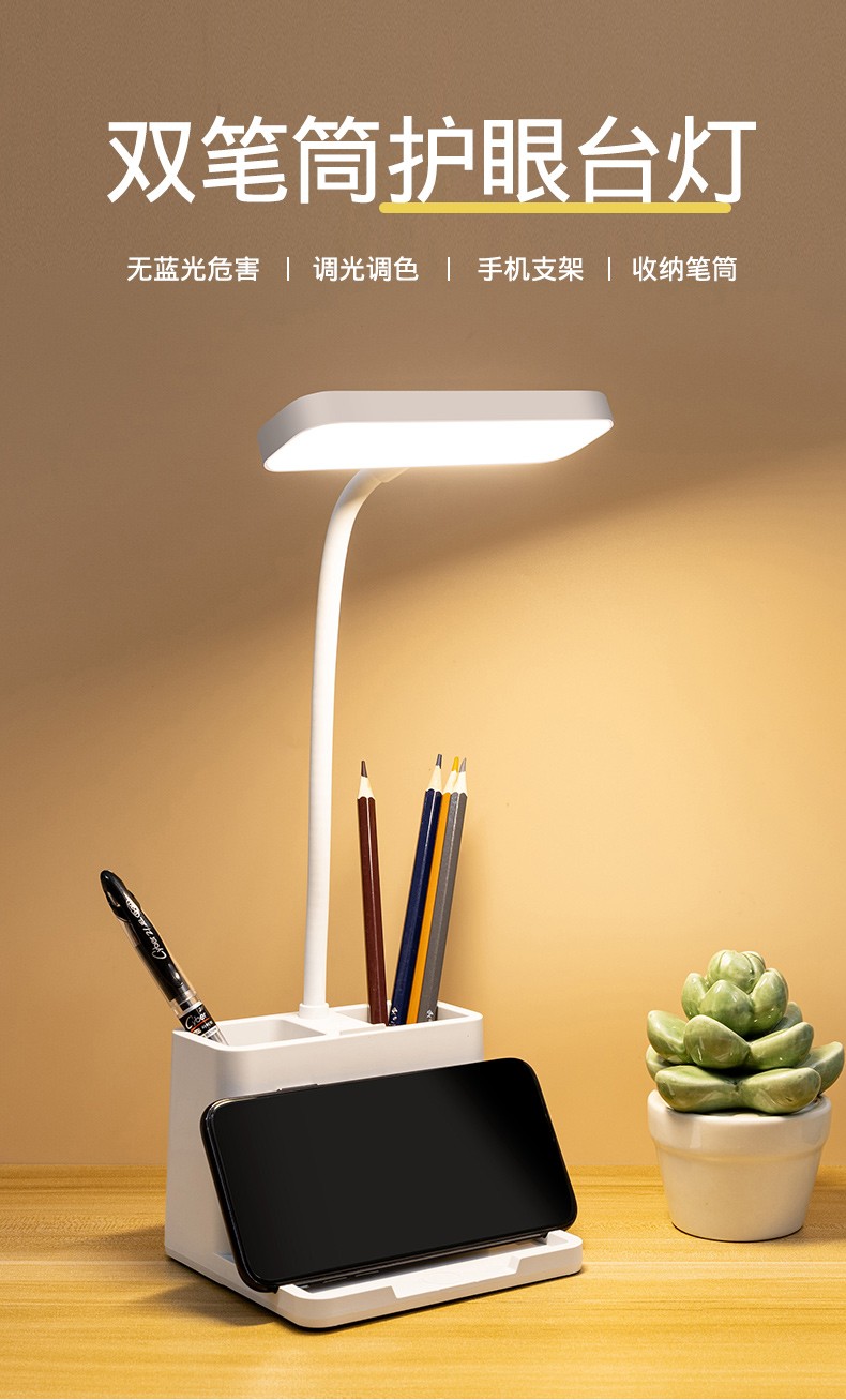 XAE台灯小学生学习护眼灯防近视充插两用书桌写作业宿舍卧室床头创意带笔筒LED小台灯