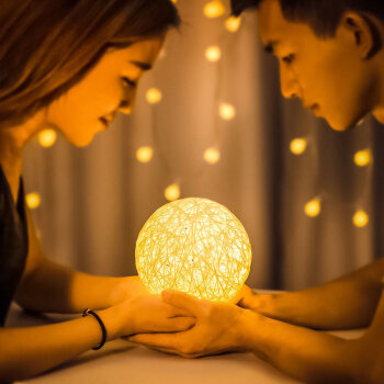 麻线藤球小夜灯泡卧室床头创意浪漫趣星空房间氛围圣诞节礼物台灯调光小夜灯USB接口供电梓宇
