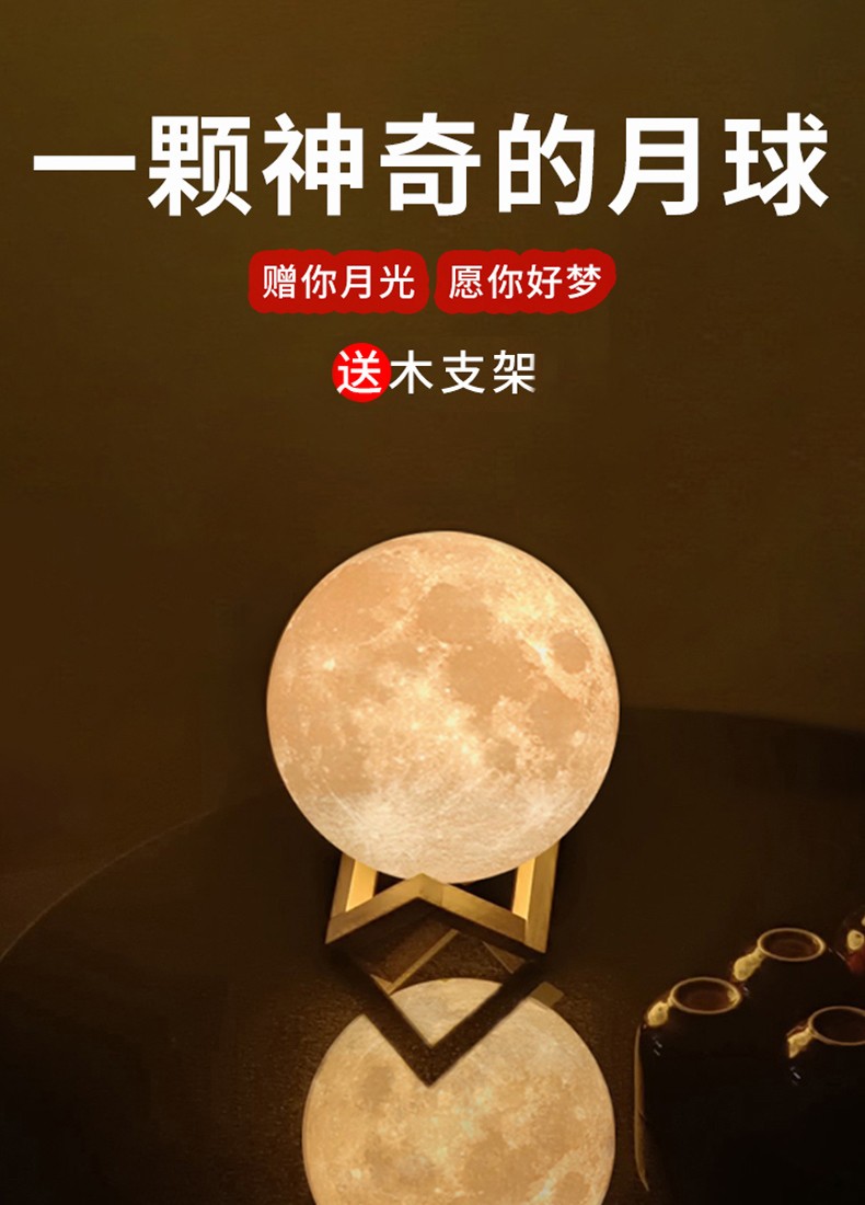 月球灯3d打印小夜灯充电氛围灯圣诞节礼物送女友圣诞生日礼物送男友男生女友女孩男孩闺蜜卧室办公室摆件