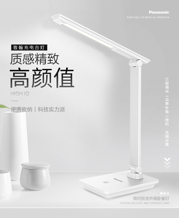 松下(Panasonic)充电台灯便携充电台灯学生工作台灯床头灯三段调光儿童阅读灯 致翰白