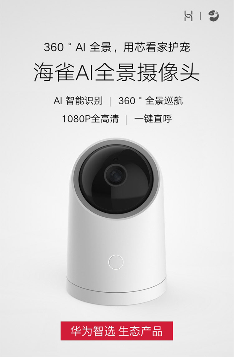 华为(HUAWEI) 智选 生态产品 海雀AI全景摄像头360度全景监控录像 智能人脸识别 高清夜视 海雀AI全景摄像头