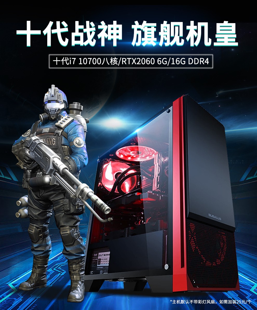 攀升战神十代i7 10700F/RTX2060/16/512G设计师水冷游戏台式电脑主机