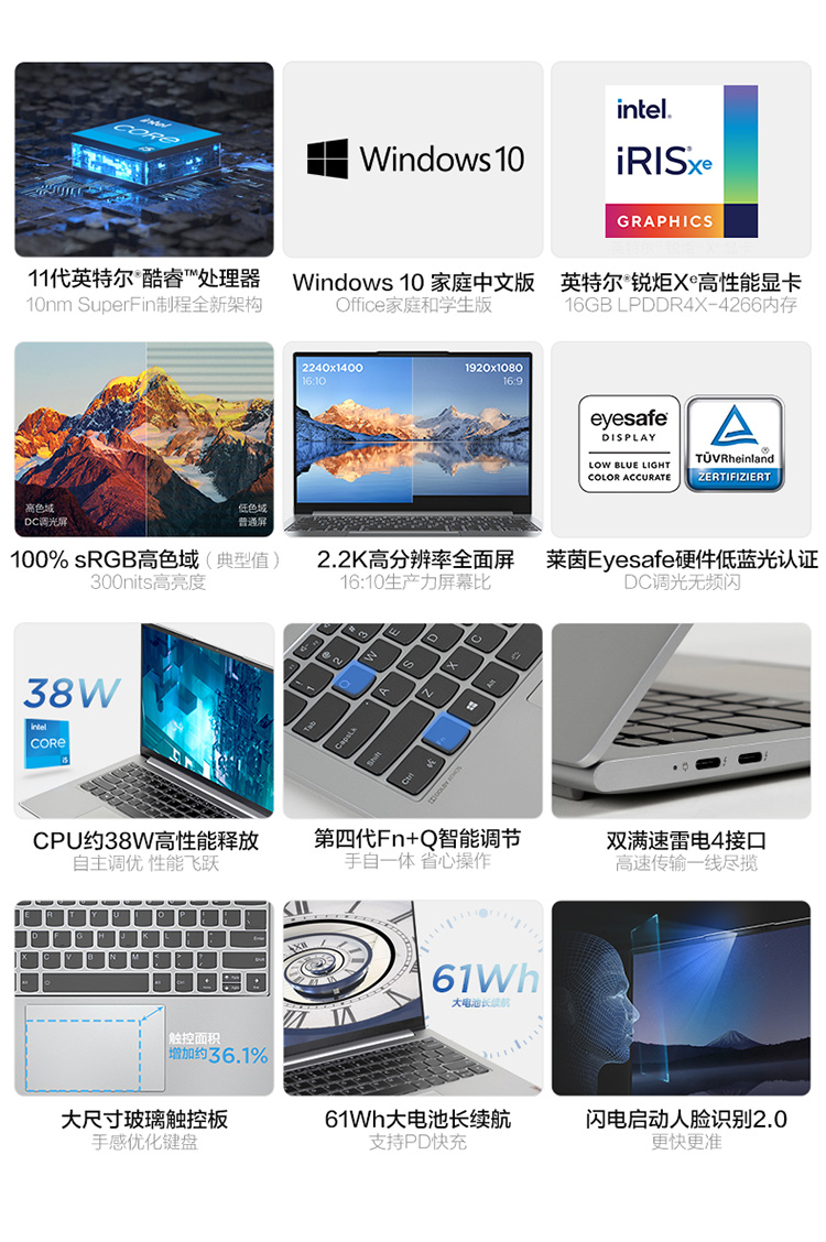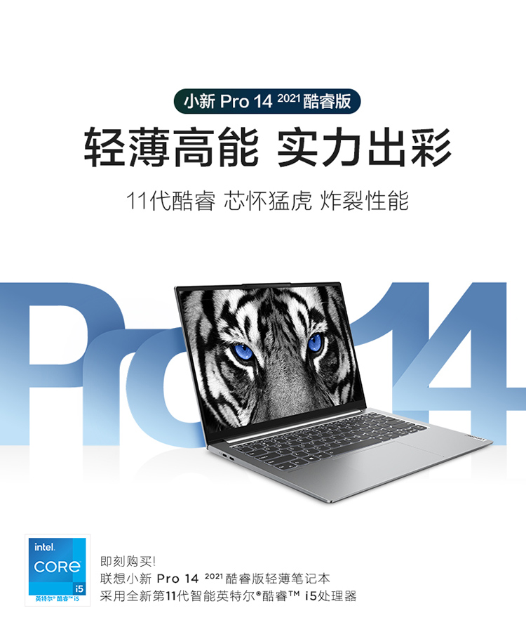 联想(Lenovo)小新Pro14性能轻薄本 英特尔酷睿i5全面屏办公笔记本电脑(i5-1135G7 16G 512G 2.2K屏 锐炬显卡)