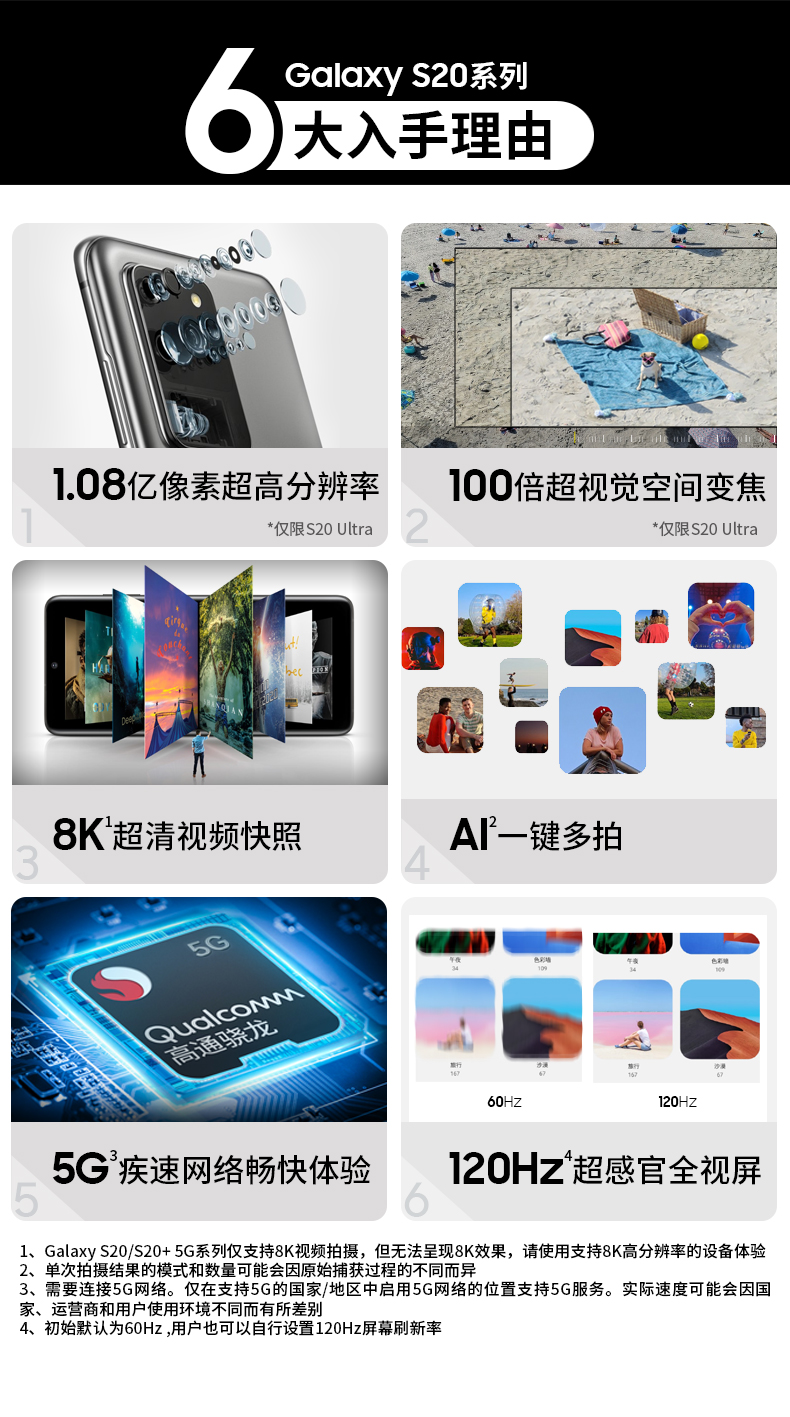 三星 Galaxy S20 5G (SM-G9810)双模5G 骁龙865 120Hz超感屏 8K视频 游戏手机 12GB+128GB 遐想灰