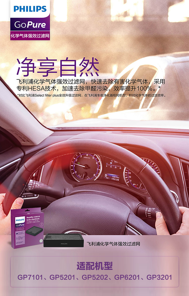 飞利浦(PHILIPS)车载空气净化器 原厂滤网 化学气体强效过滤网CFP120 适配GP7101 GP5202 GP5201 GP6201