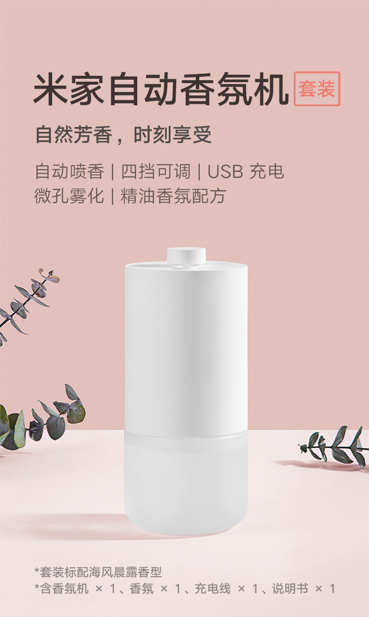 小米米家自动香氛机套装 自动喷香 四挡可调 香味浓淡可选 微孔雾化 天然精油香氛配方