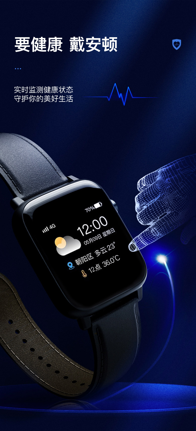 安顿 预警手表4A智能手表男女无创测血氧血压心率血糖趋势健康监测手表华为小米苹果手机通用中老年 古铜金色 2年服务期+2年血糖服务