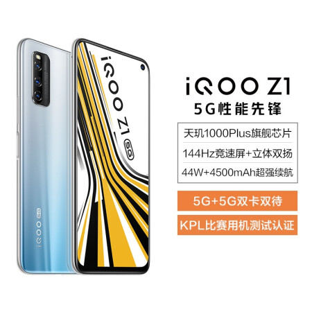 vivo iQOO Z1 5G 8GB+256GB 星河银 天玑1000Plus旗舰芯片 144Hz竞速屏 44W超快闪充 双模5G全网通手机