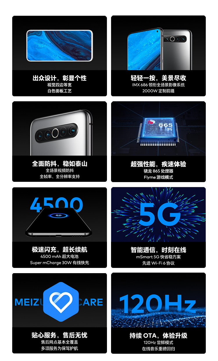 魅族17 8GB+128GB AG 梦幻独角兽 骁龙865 旗舰5G手机 30W快充 6400W后置主摄 90Hz屏幕 支持NFC 游戏手机