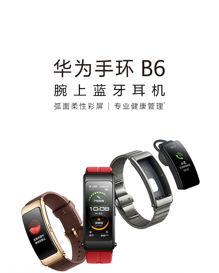 华为手环B6 运动手环 智能手环 蓝牙耳机/心率监测/触控/遥控拍照/扫码支付/Android&IOS 运动款曜石黑
