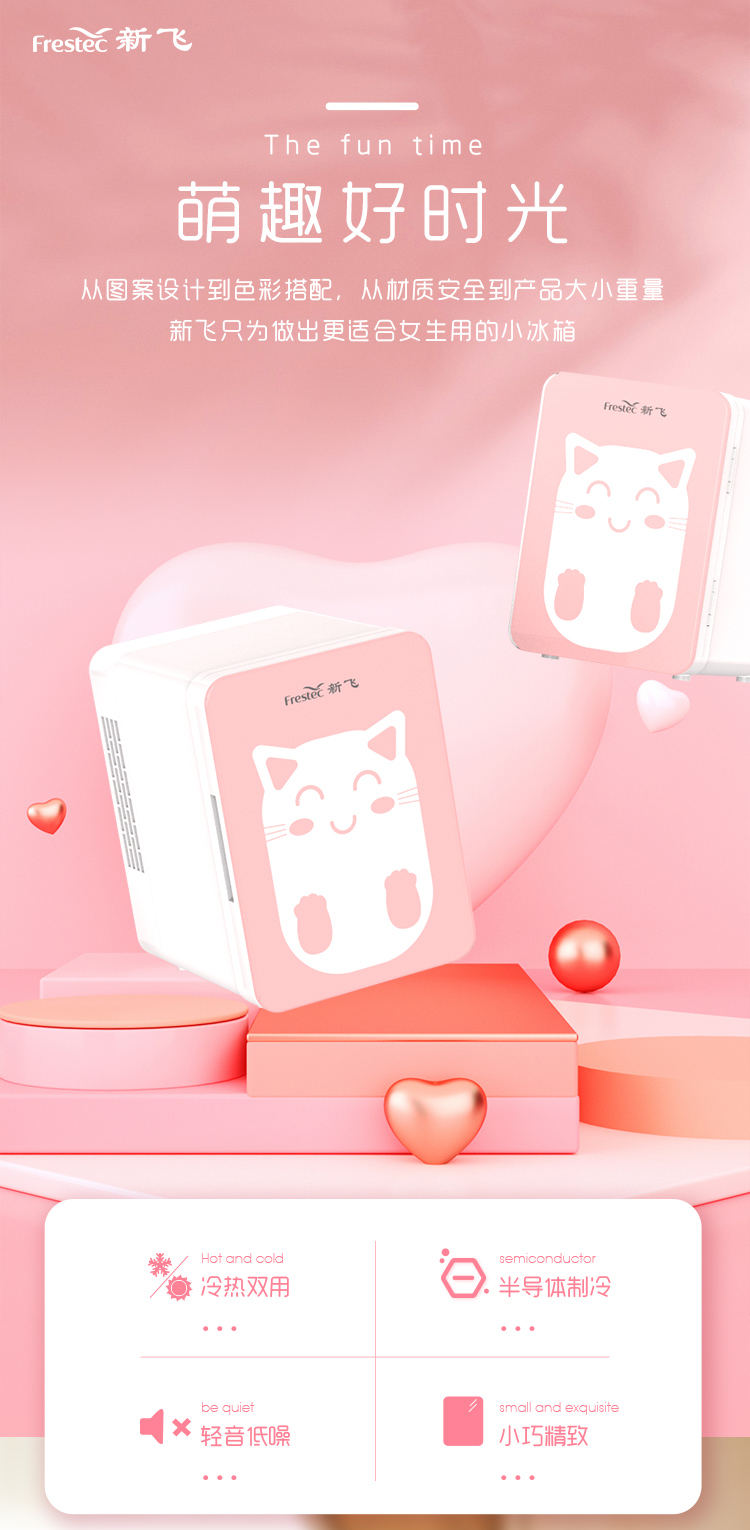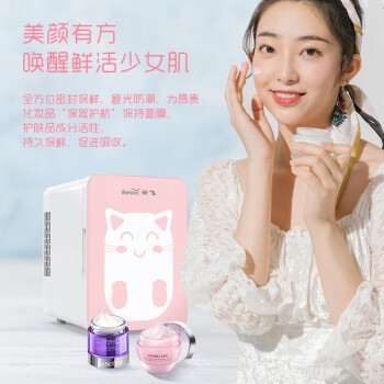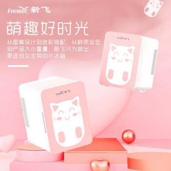 新飞 制冷保温加热三用美妆冰箱化妆品冰箱4L面膜护肤品冷藏小型mini车载冰箱学生宿舍适用 4L迷你小冰箱 粉色卡通图案